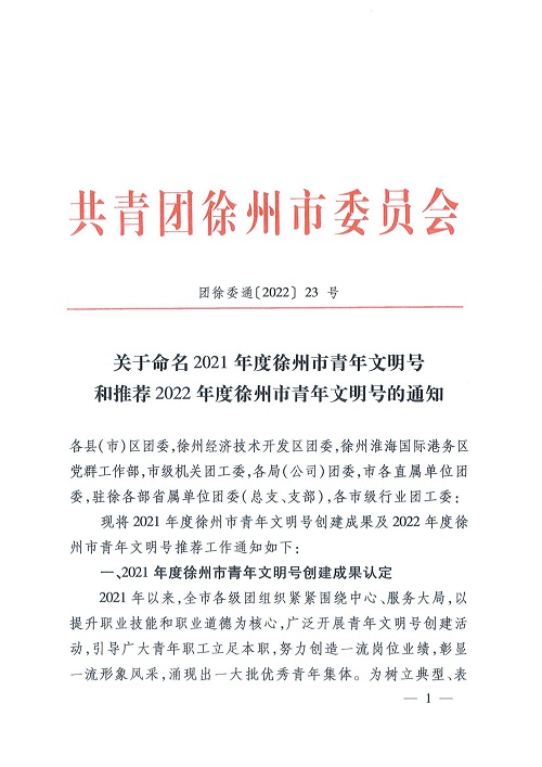 7月25日,团市委揭晓“2021年度徐州市青年文明号”集体名单,国盛集团权属企业徐州市产业发展基金管理有限公司业务部榜上有名、喜提殊荣。