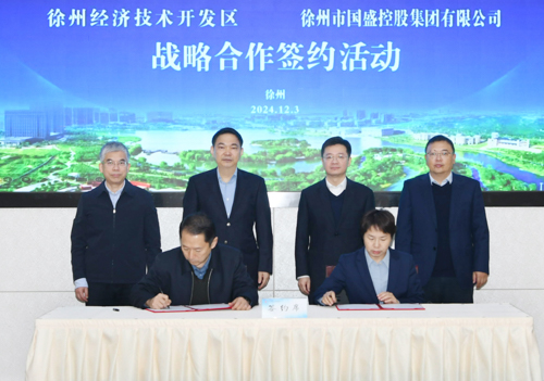 12月3日,国盛集团与徐州经开区签署战略合作协议,开启双方携手并进、共创辉煌的合作新篇章。徐州经开区党工委书记陈堂清,党工委副书记、管委会主任梁伟,党工委委员、管委会副主任季洪志,国盛集团党委书记、董事长王鹏,党委副书记、总经理陈志伟,党委委员、副总经理胡莉萍出席签约仪式,双方相关部门、企业负责人等参加签约仪式。